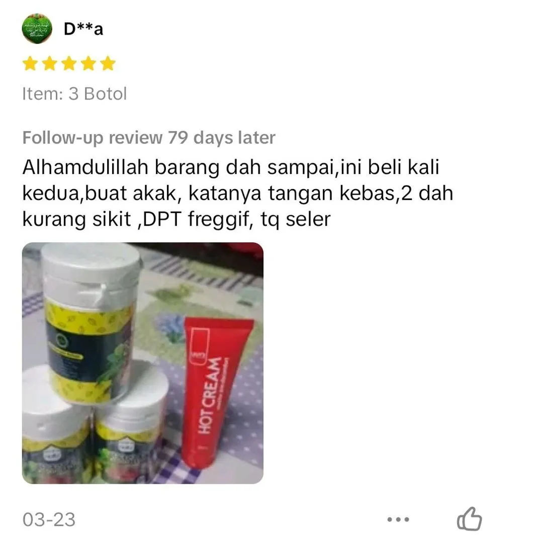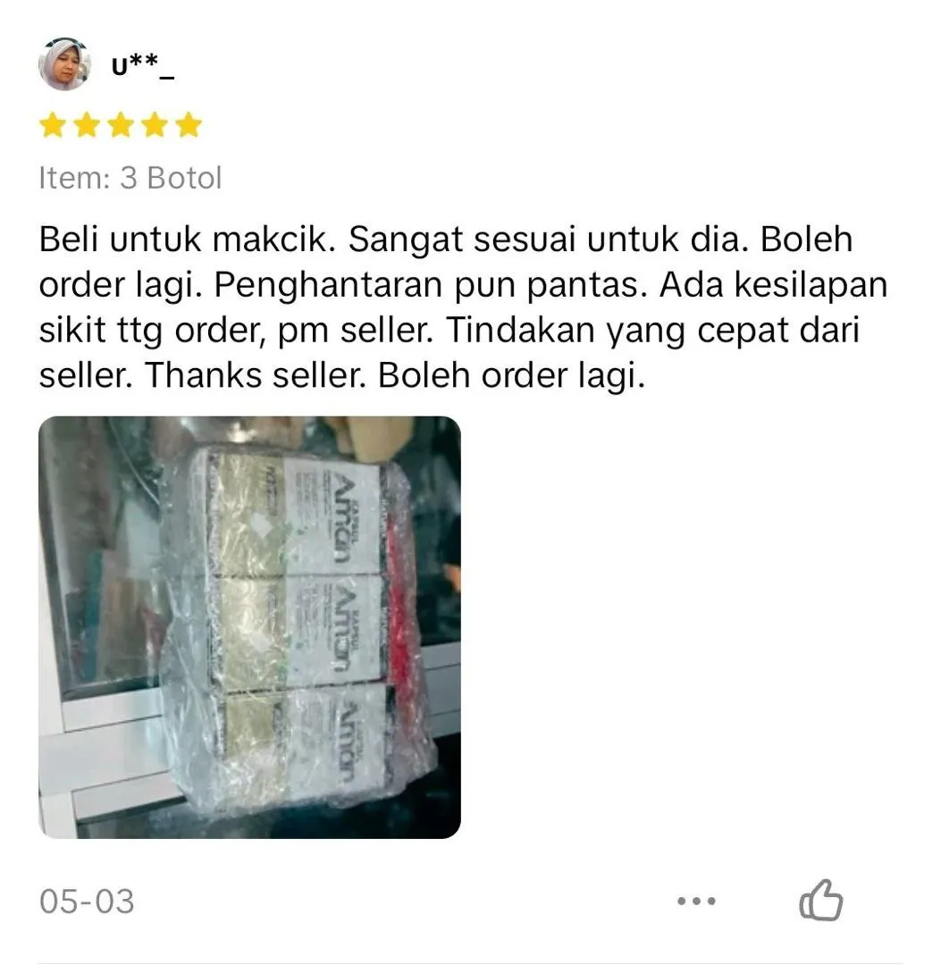 *PENAFIAN: Keberkesanan produk ini bergantung kepada kesesuaian individu. Setiap hasil dari penggunaan adalah berbeza bagi setiap individu. Produk ini akan memberi kesan terbaik sekiranya pengguna mengamalkan dengan cara betul berdasarkan banyak testimoni yang diperolehi. Kita berikhtiar, tuhan yang menyembuhkan.