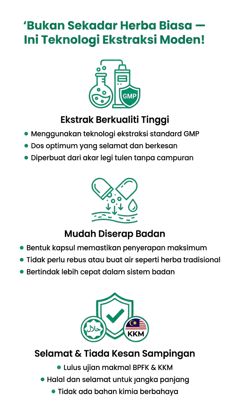 Bukan produk main-main. Ada backing kajian akademik dari universiti terkemuka Malaysia.