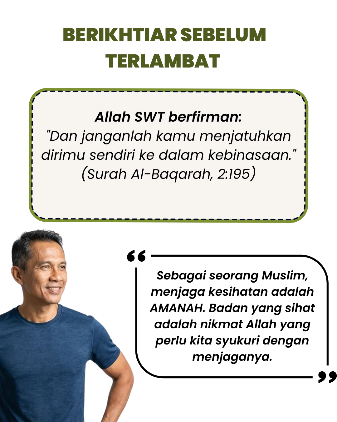 ✅ Menunaikan tanggungjawab kepada keluarga ✅ Menjaga amanah tubuh badan dari Allah ✅ Kekal beribadah dengan sempurna ✅ Tidak jadi beban kepada orang lain