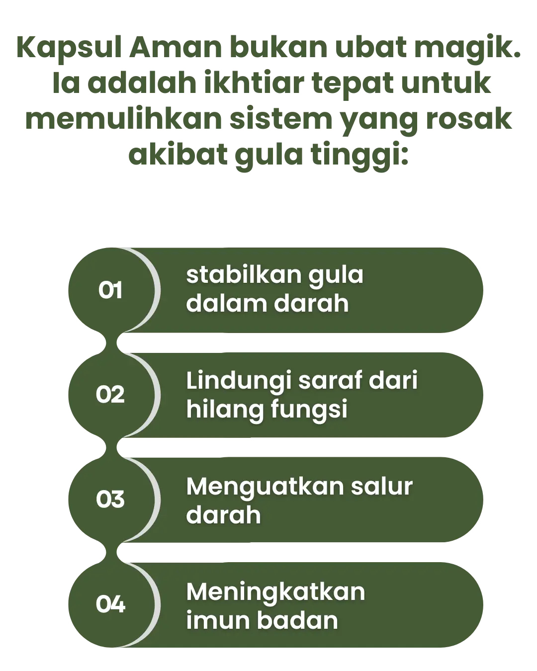 Kapsul Aman bukan sekadar supplement. Ia adalah IKHTIAR anda untuk: